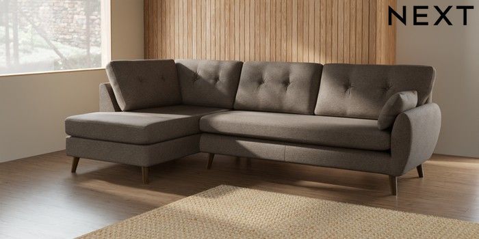 7.2.10 Wilson Buttoned Back Large Corner Chaise - Left Hand Chunky Weave Dark Natural Retro Tapered - Mid | Made Click here to use our website with more accessibility support, for example screen readers