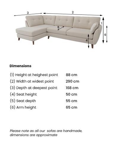 All our sofas are made from hardwood frames and most of them have supportive sprung bases combined with high density seat foam and deep filled back cushions to keep you feeling comfy no matter how long you lounge. Some of our chaise end pieces within our corners sofas have webbed based suspension that provides the best sit when clipped to the sprung based suspension one armed sofa piece.