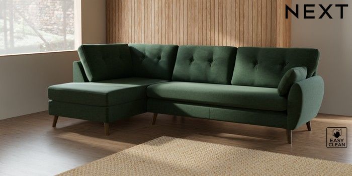 7.2.10 Wilson Buttoned Back Large Corner Chaise - Left Hand Fine Chenille Easy Clean Mid Khaki Green Retro Tapered - Mid | Made Click here to use our website with more accessibility support, for example screen readers