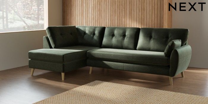 7.2.10 Wilson Buttoned Back Large Corner Chaise - Left Hand Luxe Chenille Mid Green Retro Tapered - Light | Made Click here to use our website with more accessibility support, for example screen readers