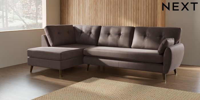7.2.10 Wilson Buttoned Back Large Corner Chaise - Left Hand Luxe Chenille Mink Brown Low Retro Tapered Metal Cap - Mid | Made Click here to use our website with more accessibility support, for example screen readers