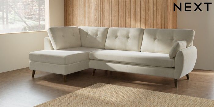 7.2.10 Wilson Buttoned Back Large Corner Chaise - Left Hand Luxe Chenille Oyster Retro Tapered - Mid | Made Click here to use our website with more accessibility support, for example screen readers
