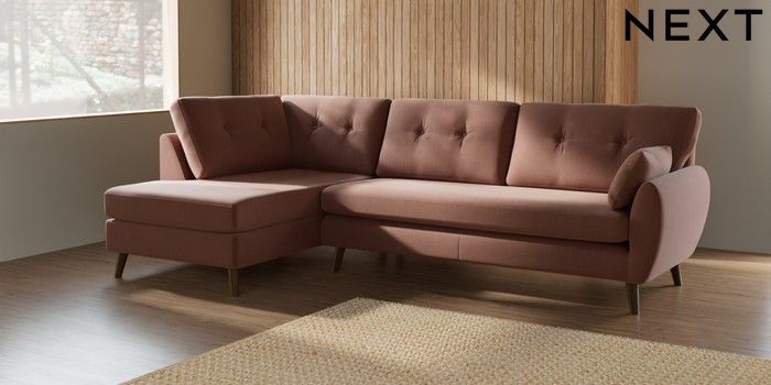 7.2.10 Wilson Buttoned Back Large Corner Chaise - Left Hand Relaxed Linen Look Light Rust Brown Retro Tapered - Mid | Made Click here to use our website with more accessibility support, for example screen readers