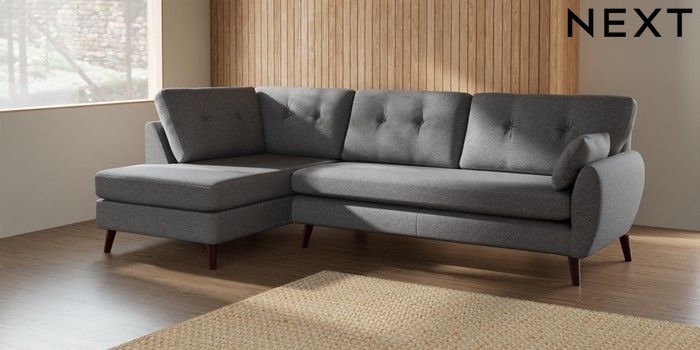 7.2.10 Wilson Buttoned Back Large Corner Chaise - Left Hand Studio Chenille Mid Grey Retro Tapered - Dark Brown | Made Click here to use our website with more accessibility support, for example screen readers