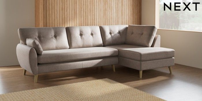 7.2.10 Wilson Buttoned Back Large Corner Chaise - Right Hand Boucle Chenille Light Natural Retro Tapered - Light | Made Click here to use our website with more accessibility support, for example screen readers