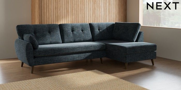 7.2.10 Wilson Buttoned Back Large Corner Chaise - Right Hand Chunky Chenille Dark Navy Blue Retro Tapered - Mid | Made Click here to use our website with more accessibility support, for example screen readers