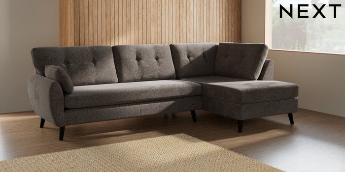 7.2.10 Wilson Buttoned Back Large Corner Chaise - Right Hand Chunky Chenille Mink Brown Retro Tapered - Dark | Made Click here to use our website with more accessibility support, for example screen readers