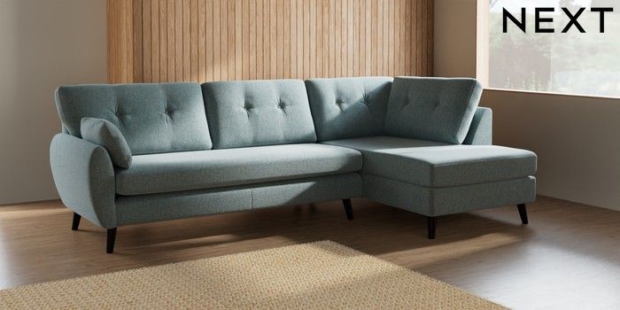 7.2.10 Wilson Buttoned Back Large Corner Chaise - Right Hand Chunky Marl Mid Blue Retro Tapered - Dark | Made Click here to use our website with more accessibility support, for example screen readers