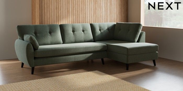 7.2.10 Wilson Buttoned Back Large Corner Chaise - Right Hand Chunky Texture Mid Forest Green Retro Tapered - Dark | Made Click here to use our website with more accessibility support, for example screen readers