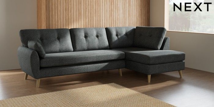 7.2.10 Wilson Buttoned Back Large Corner Chaise - Right Hand Cotswold Chenille Dark Grey Retro Tapered - Light | Made Click here to use our website with more accessibility support, for example screen readers