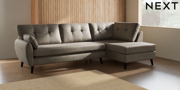 7.2.10 Wilson Buttoned Back Large Corner Chaise - Right Hand Cotswold Chenille Mid Mink Brown Retro Tapered - Dark | Made Click here to use our website with more accessibility support, for example screen readers