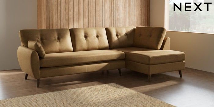 7.2.10 Wilson Buttoned Back Large Corner Chaise - Right Hand Luxe Chenille Honey Yellow Retro Tapered - Mid | Made Click here to use our website with more accessibility support, for example screen readers