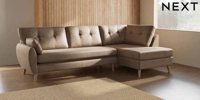 7.2.10 Wilson Buttoned Back Large Corner Chaise - Right Hand Luxe Chenille Mid Camel Beige Retro Tapered - Light | Made Click here to use our website with more accessibility support, for example screen readers