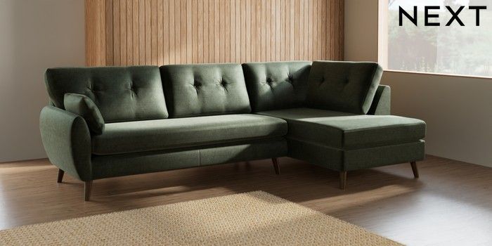 7.2.10 Wilson Buttoned Back Large Corner Chaise - Right Hand Luxe Chenille Mid Green Retro Tapered - Mid | Made Click here to use our website with more accessibility support, for example screen readers