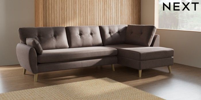 7.2.10 Wilson Buttoned Back Large Corner Chaise - Right Hand Luxe Chenille Mink Brown Retro Tapered - Light | Made Click here to use our website with more accessibility support, for example screen readers
