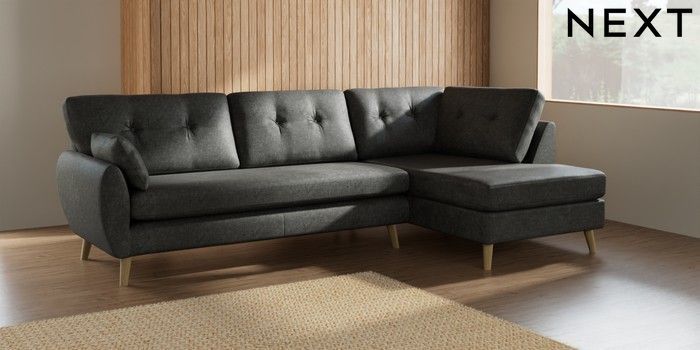 7.2.10 Wilson Buttoned Back Large Corner Chaise - Right Hand Plush Chenille Dark Grey Retro Tapered - Light | Made Click here to use our website with more accessibility support, for example screen readers
