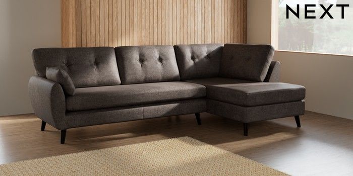 7.2.10 Wilson Buttoned Back Large Corner Chaise - Right Hand Plush Chenille Mink Brown Retro Tapered - Dark | Made Click here to use our website with more accessibility support, for example screen readers