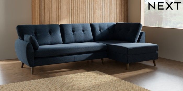 7.2.10 Wilson Buttoned Back Large Corner Chaise - Right Hand Ripple Chenille Dark Blue Retro Tapered - Mid | Made Click here to use our website with more accessibility support, for example screen readers