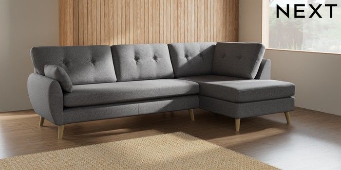 7.2.10 Wilson Buttoned Back Large Corner Chaise - Right Hand Studio Chenille Mid Grey Retro Tapered - Light | Made Click here to use our website with more accessibility support, for example screen readers