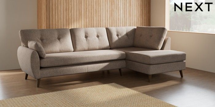 7.2.10 Wilson Buttoned Back Large Corner Chaise - Right Hand Tweedy Chenille Mid Natural Retro Tapered - Mid | Made Click here to use our website with more accessibility support, for example screen readers