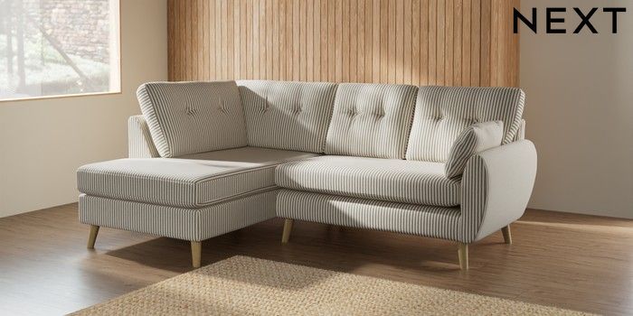 7.2.10 Wilson Buttoned Back Medium Corner Chaise - Left Hand Chenille Stripe Moss Green Retro Tapered - Light | Made Click here to use our website with more accessibility support, for example screen readers