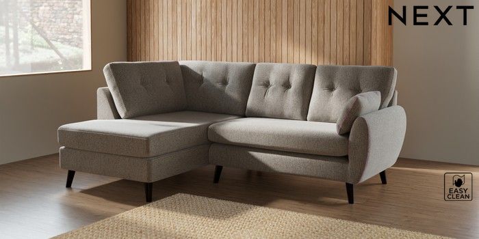 7.2.10 Wilson Buttoned Back Medium Corner Chaise - Left Hand Chunky Boucle Easy Clean Dove Retro Tapered - Dark | Made Click here to use our website with more accessibility support, for example screen readers