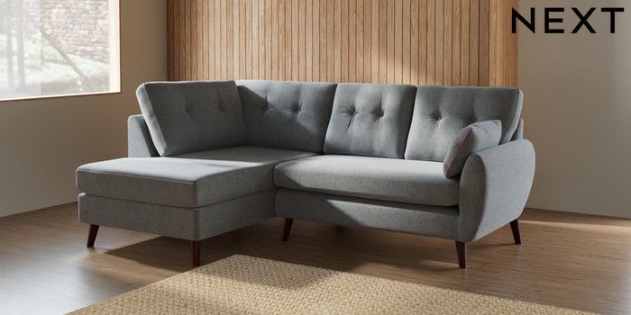 7.2.10 Wilson Buttoned Back Medium Corner Chaise - Left Hand Chunky Marl Mid Grey Retro Tapered - Dark Brown | Made Click here to use our website with more accessibility support, for example screen readers