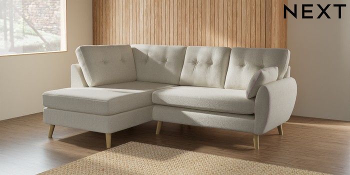 7.2.10 Wilson Buttoned Back Medium Corner Chaise - Left Hand Chunky Texture Oyster Retro Tapered - Light | Made Click here to use our website with more accessibility support, for example screen readers