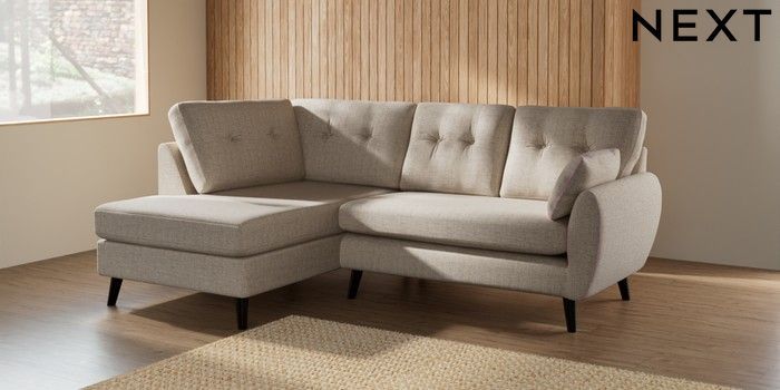 7.2.10 Wilson Buttoned Back Medium Corner Chaise - Left Hand Chunky Weave Mid Natural Retro Tapered - Dark | Made Click here to use our website with more accessibility support, for example screen readers