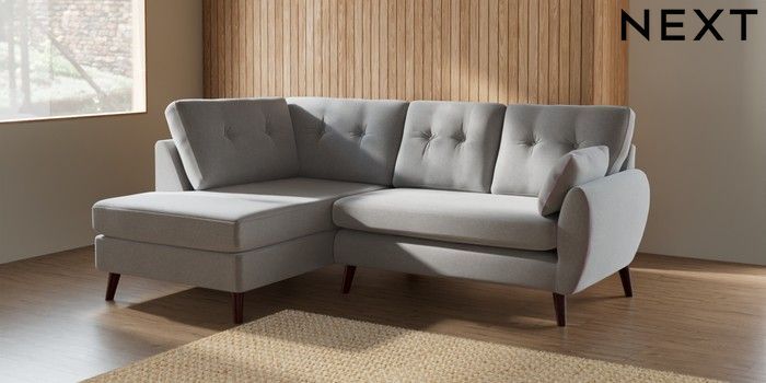 7.2.10 Wilson Buttoned Back Medium Corner Chaise - Left Hand Natural Mix Light Grey Retro Tapered - Dark Brown | Made Click here to use our website with more accessibility support, for example screen readers