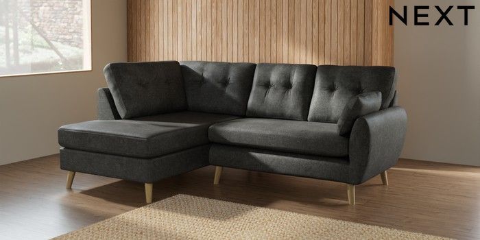 7.2.10 Wilson Buttoned Back Medium Corner Chaise - Left Hand Plush Chenille Dark Grey Retro Tapered - Light | Made Click here to use our website with more accessibility support, for example screen readers