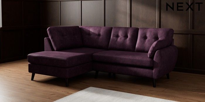 7.2.10 Wilson Buttoned Back Medium Corner Chaise - Left Hand Plush Chenille Dark Plum Purple Retro Tapered - Dark | Made Click here to use our website with more accessibility support, for example screen readers