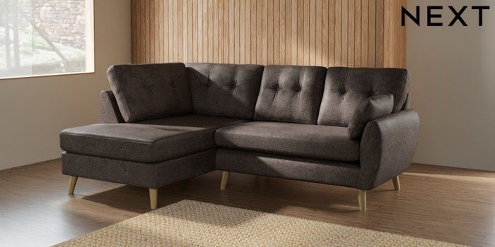 7.2.10 Wilson Buttoned Back Medium Corner Chaise - Left Hand Plush Chenille Mink Brown Retro Tapered - Light | Made Click here to use our website with more accessibility support, for example screen readers