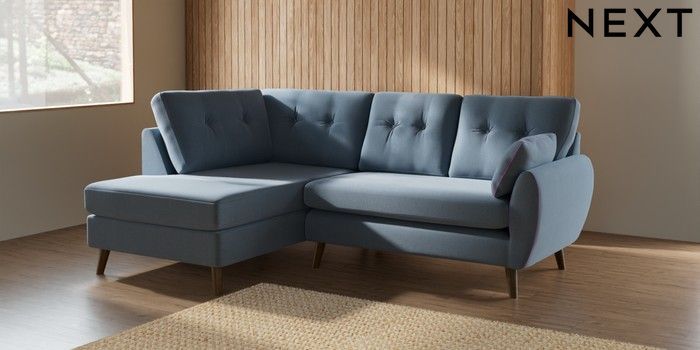 7.2.10 Wilson Buttoned Back Medium Corner Chaise - Left Hand Relaxed Linen Look Mid Blue Retro Tapered - Mid | Made Click here to use our website with more accessibility support, for example screen readers