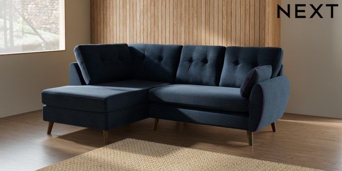 7.2.10 Wilson Buttoned Back Medium Corner Chaise - Left Hand Ripple Chenille Dark Blue Retro Tapered - Mid | Made Click here to use our website with more accessibility support, for example screen readers
