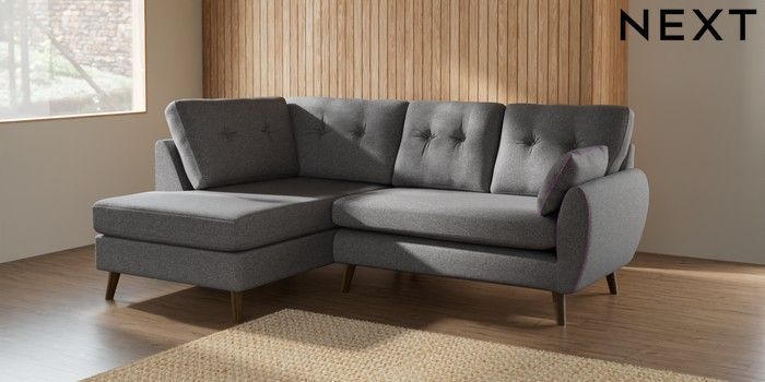 7.2.10 Wilson Buttoned Back Medium Corner Chaise - Left Hand Studio Chenille Mid Grey Retro Tapered - Mid | Made Click here to use our website with more accessibility support, for example screen readers