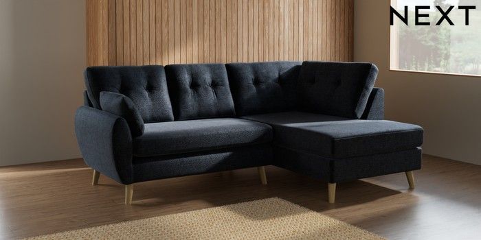 7.2.10 Wilson Buttoned Back Medium Corner Chaise - Right Hand Boucle Chenille Dark Slate Blue Retro Tapered - Light | Made Click here to use our website with more accessibility support, for example screen readers