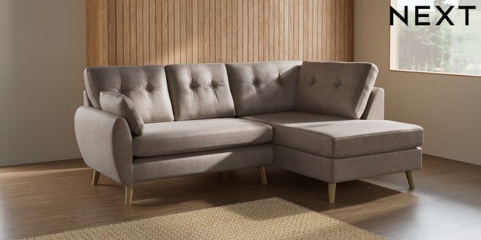 7.2.10 Wilson Buttoned Back Medium Corner Chaise - Right Hand Boucle Chenille Light Natural Retro Tapered - Light | Made Click here to use our website with more accessibility support, for example screen readers