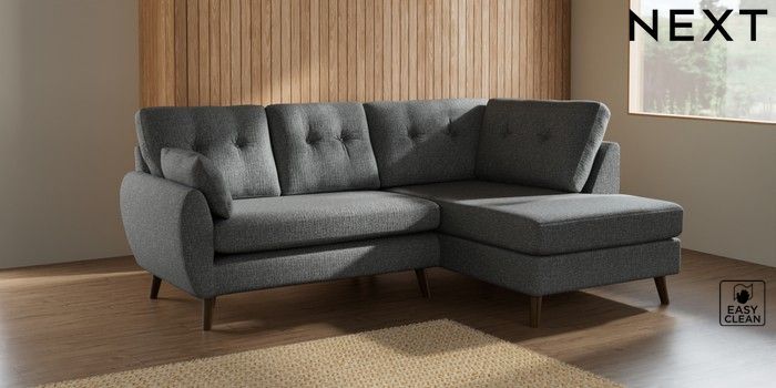 7.2.10 Wilson Buttoned Back Medium Corner Chaise - Right Hand Chunky Boucle Easy Clean Mid Grey Retro Tapered - Mid | Made Click here to use our website with more accessibility support, for example screen readers