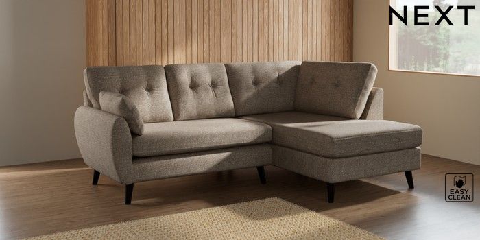 7.2.10 Wilson Buttoned Back Medium Corner Chaise - Right Hand Chunky Boucle Easy Clean Mid Natural Retro Tapered - Dark | Made Click here to use our website with more accessibility support, for example screen readers