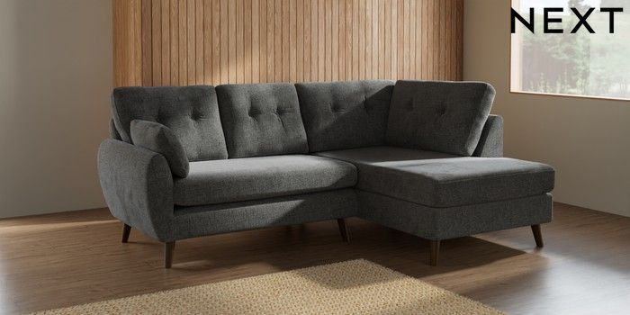 7.2.10 Wilson Buttoned Back Medium Corner Chaise - Right Hand Chunky Chenille Dark Grey Retro Tapered - Mid | Made Click here to use our website with more accessibility support, for example screen readers