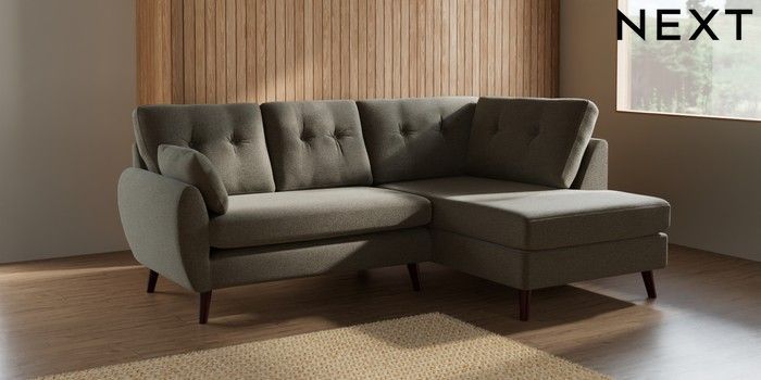 7.2.10 Wilson Buttoned Back Medium Corner Chaise - Right Hand Chunky Marl Light Olive Green Retro Tapered - Dark Brown | Made Click here to use our website with more accessibility support, for example screen readers