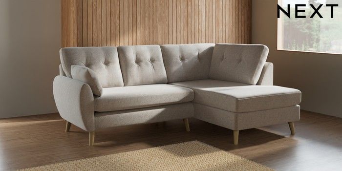 7.2.10 Wilson Buttoned Back Medium Corner Chaise - Right Hand Chunky Marl Oyster Retro Tapered - Light | Made Click here to use our website with more accessibility support, for example screen readers