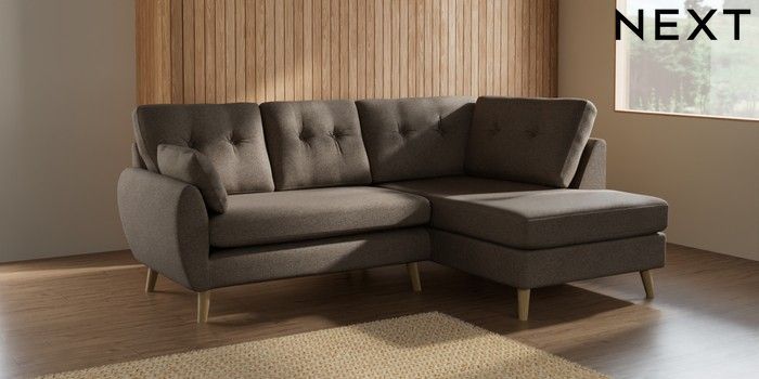 7.2.10 Wilson Buttoned Back Medium Corner Chaise - Right Hand Chunky Weave Dark Natural Retro Tapered - Light | Made Click here to use our website with more accessibility support, for example screen readers