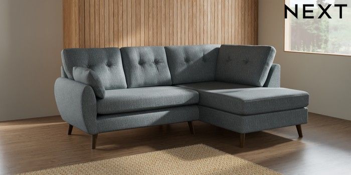 7.2.10 Wilson Buttoned Back Medium Corner Chaise - Right Hand Chunky Weave Mid Blue Retro Tapered - Mid | Made Click here to use our website with more accessibility support, for example screen readers