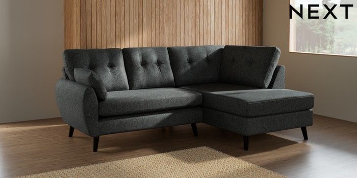 7.2.10 Wilson Buttoned Back Medium Corner Chaise - Right Hand Cotswold Chenille Dark Grey Retro Tapered - Dark | Made Click here to use our website with more accessibility support, for example screen readers