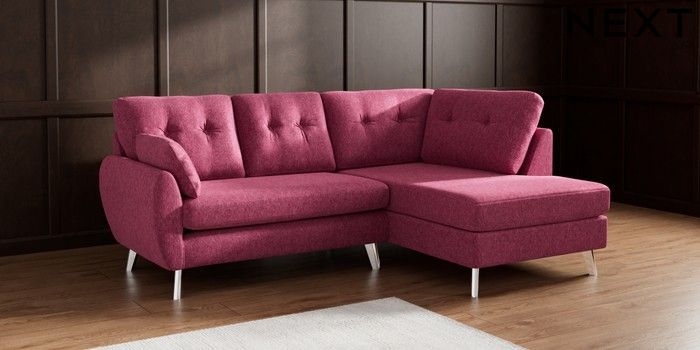 7.2.10 Wilson Buttoned Back Medium Corner Chaise - Right Hand Cotswold Chenille Dark Raspberry Pink Metal Tapered - Chrome | Made Click here to use our website with more accessibility support, for example screen readers