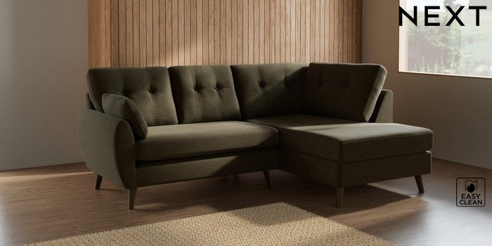 7.2.10 Wilson Buttoned Back Medium Corner Chaise - Right Hand Fine Chenille Easy Clean Dark Moss Green Retro Tapered - Mid | Made Click here to use our website with more accessibility support, for example screen readers