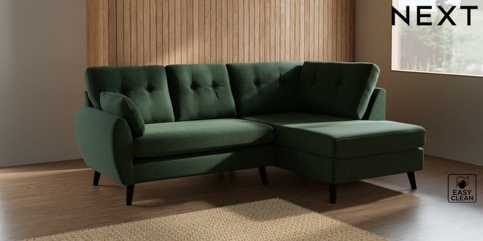 7.2.10 Wilson Buttoned Back Medium Corner Chaise - Right Hand Fine Chenille Easy Clean Mid Khaki Green Retro Tapered - Dark | Made Click here to use our website with more accessibility support, for example screen readers