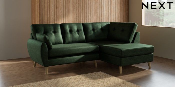 7.2.10 Wilson Buttoned Back Medium Corner Chaise - Right Hand Luxe Chenille Dark Green Retro Tapered - Light | Made Click here to use our website with more accessibility support, for example screen readers